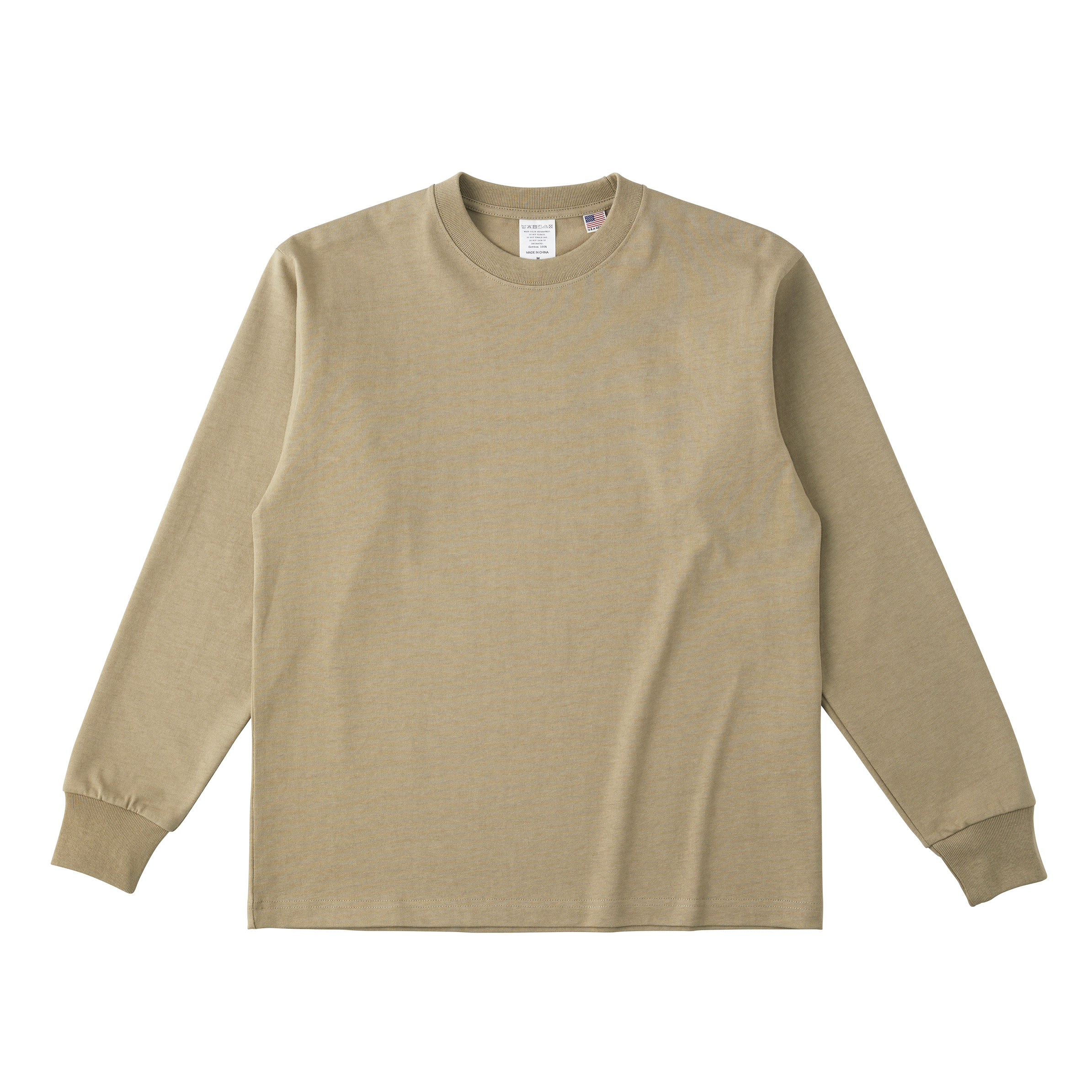 - 米綿100%のオープンエンド糸を使用した8.1ozロングスリーブTシャツ。インポートボディを意識したサイズ感と8.1ozオープンエンド糸ならではのラフでタフな生地感。
